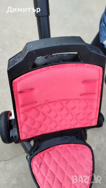 Триколката е използвана. От времето тапицерията е почнала да се разяжда. Видимо е на снимките. Едната гума е леко натисната. За повече вижте снимките и видеото. Старал съм се да опиша и снимам максимално точно състоянието. Сенника е почти неизползван и е прибран в кутията.