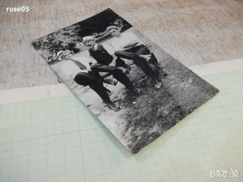 Снимка стара на трима мъже на пейка → Обява 47994012