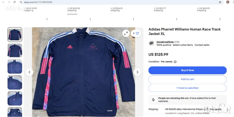 горнище adidas humanrace pharrell williams адидас суитчър худи яке мъжко спорт оригинал S
