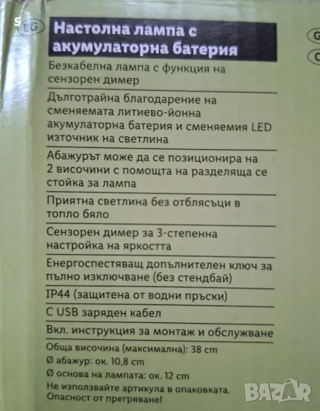 настолна лампа с акумулаторна батерия