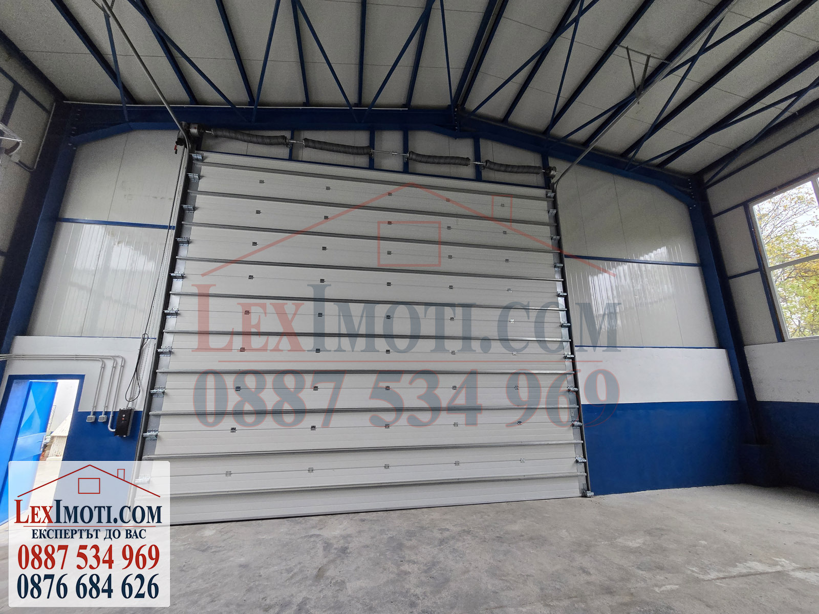 🟩Склада е оборудван с голяма вдигаща се врата с размери 6,5м х 7м