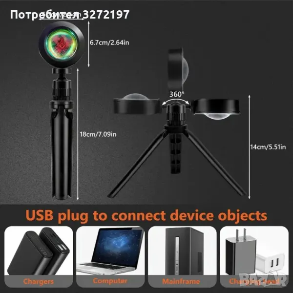 1, 16 RGB Многоцветни - Обновената версия на лампата за залез слънце