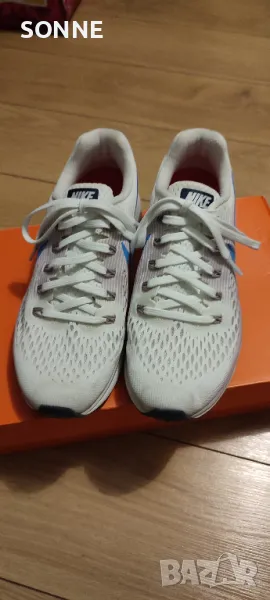 Предлагам дамски маратонки Nike Air в отлично състояние, както е видно от снимките като нови! Продавам ги както са купени от магазин на Nike /маратонки с предпазна хартия и кутия/. Маратонките са подходящи за бягане, спорт на закрито и открито, разходка в града, парка или планината. Подходящи са за ежедневно носене. Обувките са носени 2-3 пъти, но винаги са пазени и почиствани. Продавам ги защото имам доста, а тези стоят прибрани и не ги използвам.