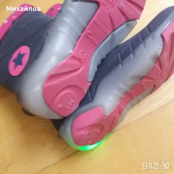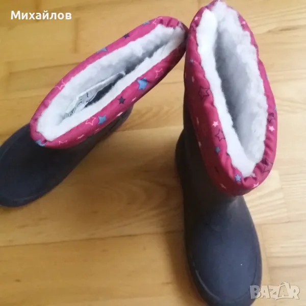 Детски пролетно -есенни гумени ботуши 28-29. С подплата пух. Със светещи подметки / вижда се на снимките/ . Нови .