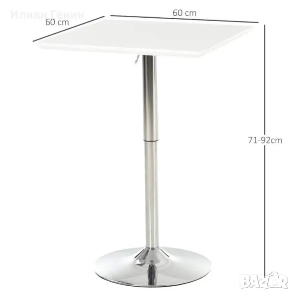 HOMCOM Бар маса, регулируема по височина квадратна бар маса Стомана Бяла 60 x 60 x 69-92 cm - 220.00лв.
