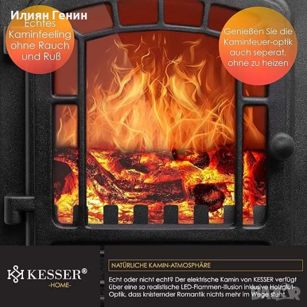Електрическа камина Kesser® с нагревател с вентилатор, 2000 W електрическа камина, електрически нагревател, LED камина, камина с ефект, печка с ефект на пламък, безшумна, регулируема, черна - 200.00лв.