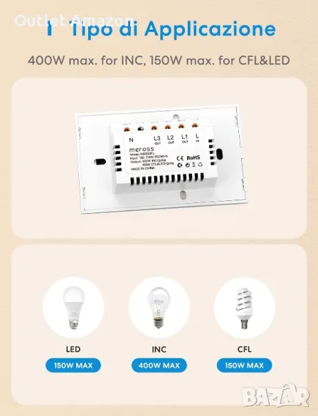 , снимка 3 - Друга електроника - 47996809 интелигентен превключвател Meross Home Automation WiFi
