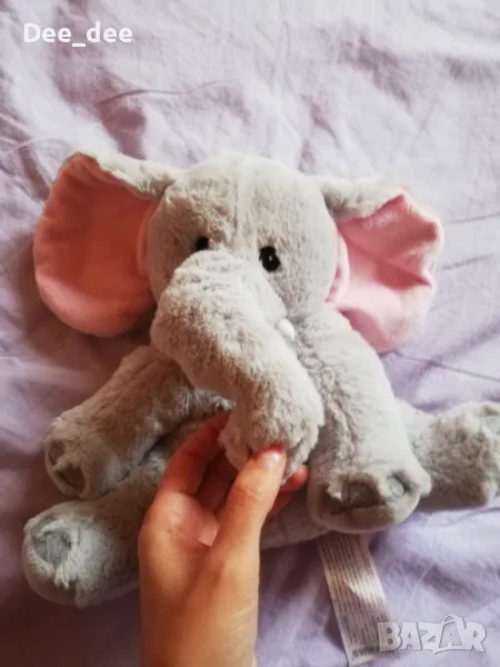 Слончето е ползвано кратко за облекчаване на колики. Като ново е и няма забележки. Лесно се затопля в микровълнова и ухае леко на лавандула. Пълнежът (в областта на корема) не може да се вади. Може и да се слага във фризер за изстудяване.
