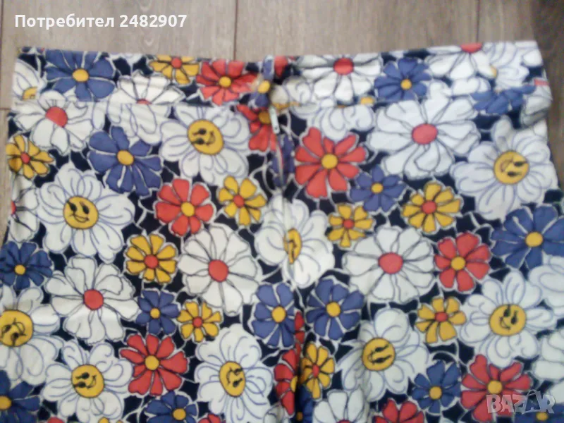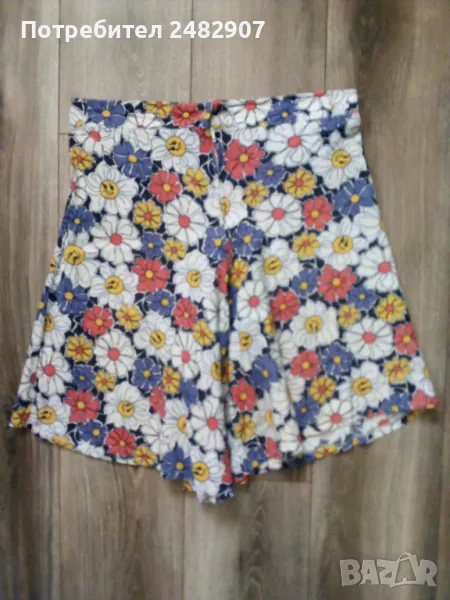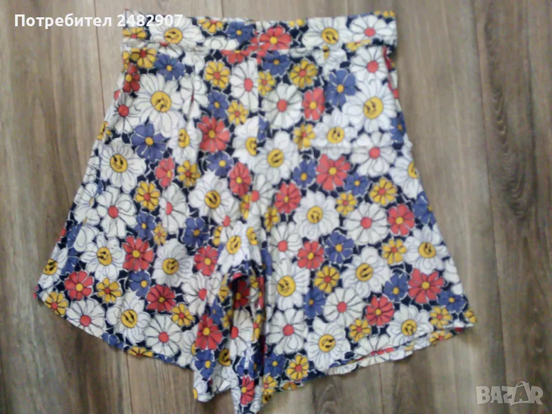 Къси дамски панталони от времето на соца. Ширина в талията - 42 см, дължина от талията до чатала - 40 см, дължина от талията до долу - 49 см, ширина на крачола в долната част - 48,5 см. Много запазени, почти не са използвани, закопчаване - с цип и копче отпред.