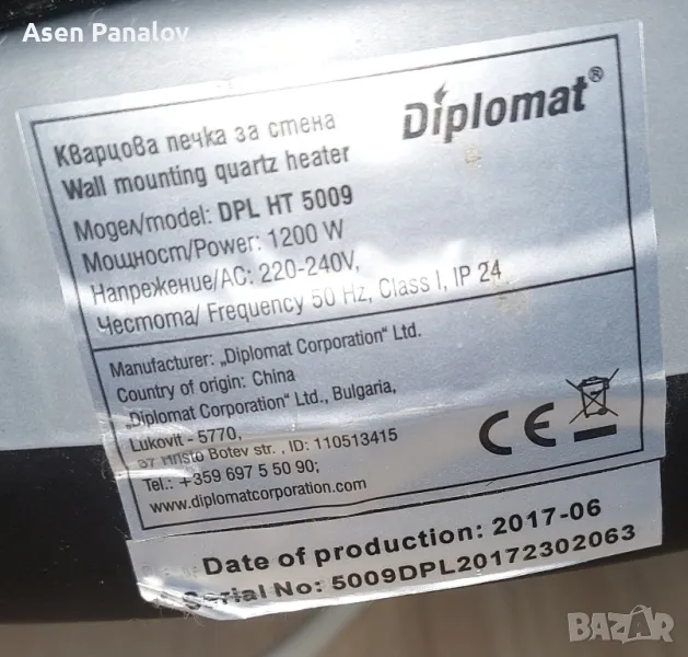 Кварцова печка за баня Diplomat , снимка 1 - Отоплителни печки - 47998725 Кварцова печка за баня Diplomat , снимка 2 - Отоплителни печки - 47998725 Кварцова печка за баня Diplomat , снимка 3 - Отоплителни печки - 47998725 Кварцова печка за баня Diplomat , снимка 4 - Отоплителни печки - 47998725 Кварцова печка за баня Diplomat , снимка 5 - Отоплителни печки - 47998725 1/5