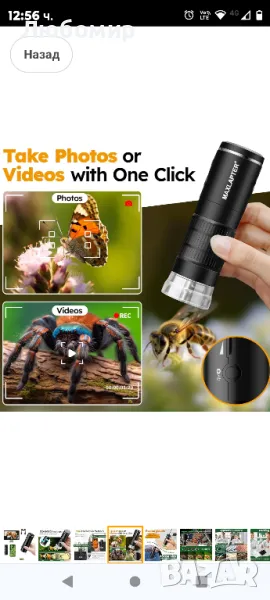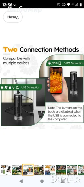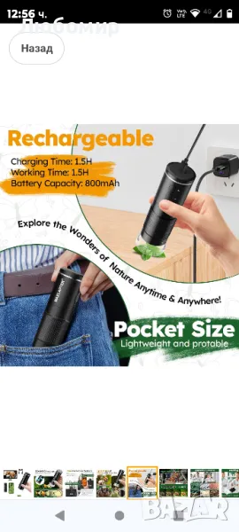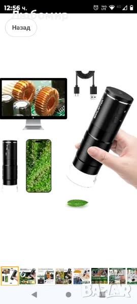 Безжичен цифров микроскоп, 50X-1000X преносим WiFi ръчен цифров микроскоп, джобен USB микроскоп с чанта за съхранение на препарати за iPhone Android телефон iPad таблет Windows Mac OS.50x до 1000x HD увеличение, 2-мегапикселов микроскоп с изображения с висока разделителна способност, 1920 x 1080P HD изображение за смартфони, 1280 x 720P изображение за компютри. Вградените 8 LED светлини и дизайнът с мека светлина осигуряват достатъчно светлина, дългосрочното наблюдение не уврежда очите ви. На цифровия микроскоп има копче за регулиране на светлината, което ви позволява да регулирате яркостта на светлината според средата на наблюдение.Можете да правите снимки или видеоклипове на вашите наблюдения и да ги запазвате на мобилния си телефон чрез бутона на преносимия микроскоп или бутона на приложението. Освен това можете да увеличите 1,2x / 1,4x / 1,6x / 1,8x / 2,0x на телефона си чрез бутоните за увеличение и намаляване на цифровия микроскоп. (Само Wi-Fi връзка) Много полезно за записване на цикъла на промяна на наблюдавания обект.WiFi и USB микроскоп: Този безжичен ръчен цифров микроскоп с WiFi може не само да се свързва с iPhone, телефони с Android, iPad и таблети, но също така да се свързва с компютри с Windows или Mac OS чрез USB кабел, за да получите по-голям изглед. Предоставени са приложения (следвайте ръководството с инструкции).Акумулаторен и преносим мини микроскоп: Този USB ръчен цифров микроскоп с вградена батерия от 800 mAh и презареждащ се USB дизайн може да се използва 1,5 часа, когато е напълно зареден. Портативен микроскоп с джобен размер, удобен за вас и вашите деца да изследвате вълшебния и цветен микроскопичен свят на открито или у дома.