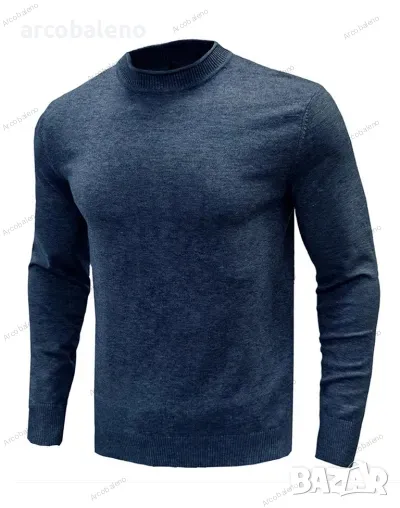 Едноцветен мъжки пуловер с дълъг ръкав, 8цвята