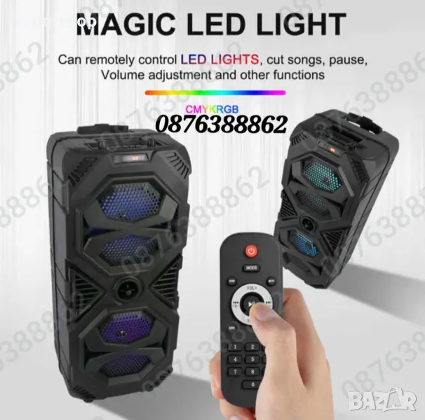 Караоке тонколона 16 инча с акумулаторна батерия (зарежда се от 220V или от 12V)ЦВЕТОМУЗИКА - вградени светлинни ефекти, с копче за включване и изключване BLUETOOTH функция - сдвояванете колоната с GSM, компютър, лаптоп и слушате любимата си музика безжично - обхват до 10-12 метра
