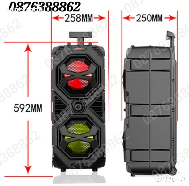 Нов модел Голяма Караоке Тонколона 16 инча басов говорител, 60см. с Дистанционно, Блутут, Безжичен Микрофон, Лед Светлини, МP3 плеър от SD карта или флашка, вградена акумулаторна батерия, Колелца и удобна дръжка за пренасяне, с много добро качество, на ниска цена.