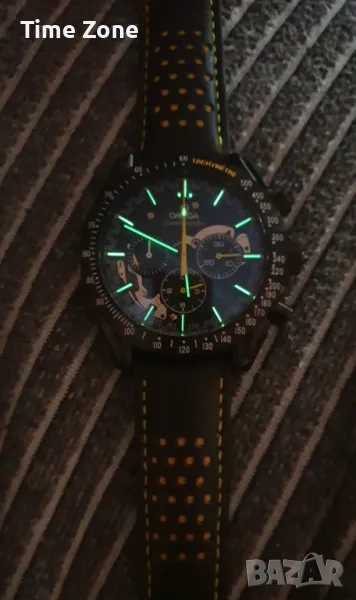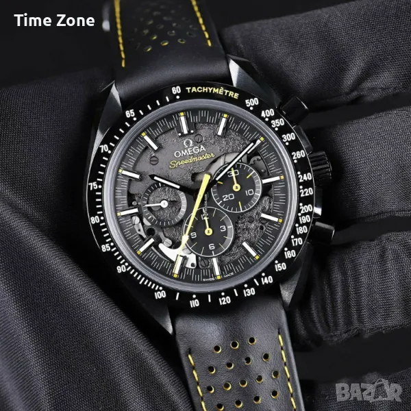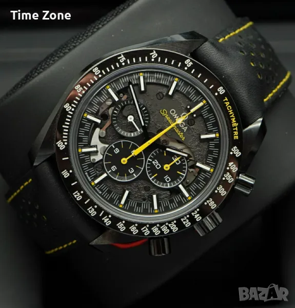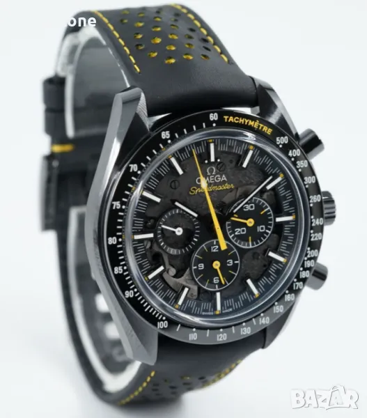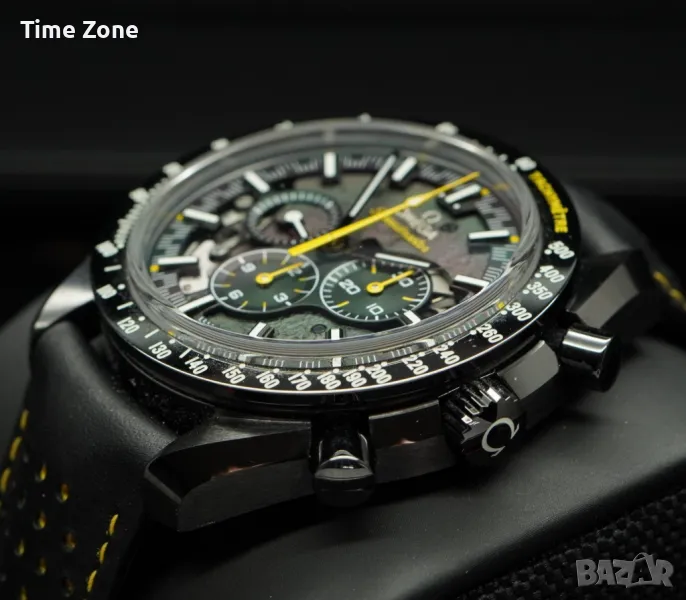 - Циферблат: Скелетонизиран, черен с жълти акценти
