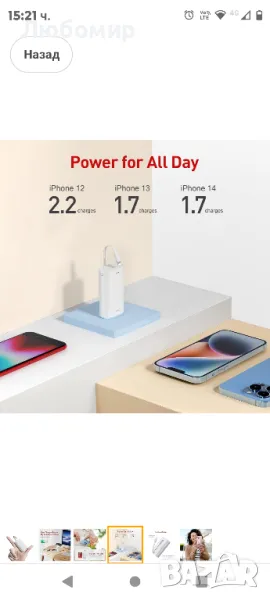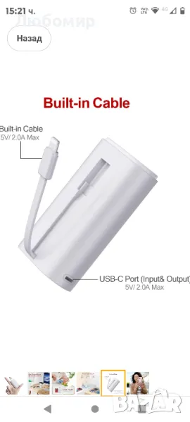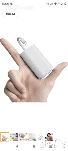 Преносимо зарядно устройство iWALK 9000mAh Power Bank с вграден кабел, малка външна батерия, съвместима с iPhone 14/14 Plus/14 Pro Max/13/13 Mini/13 Pro Max/12/12/Pro/11/XR/XS/X /8/7/6,