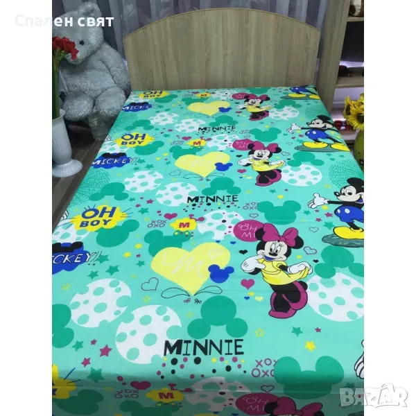 Комплектът може да се изработи и с едноцветен долен чаршаф.
