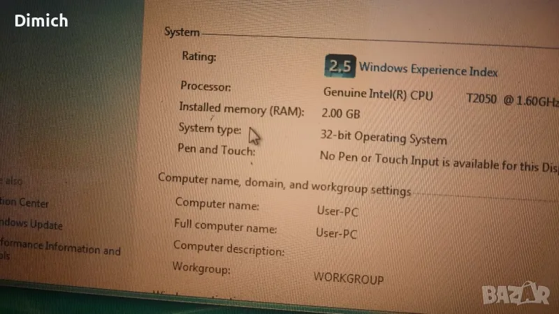 Лаптопа е работещ липсва капачето за обслужване охлаждането на процесора и безела. Без зарядно и батерия