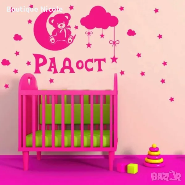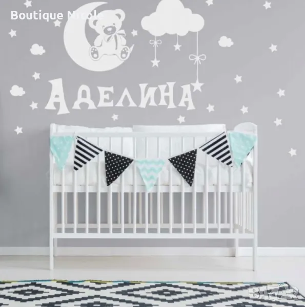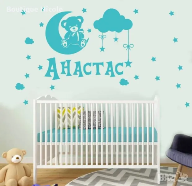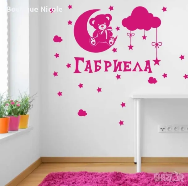 Стикер за стена Комплект"Меченце с името на Вашето детенце" → Обява 48002338