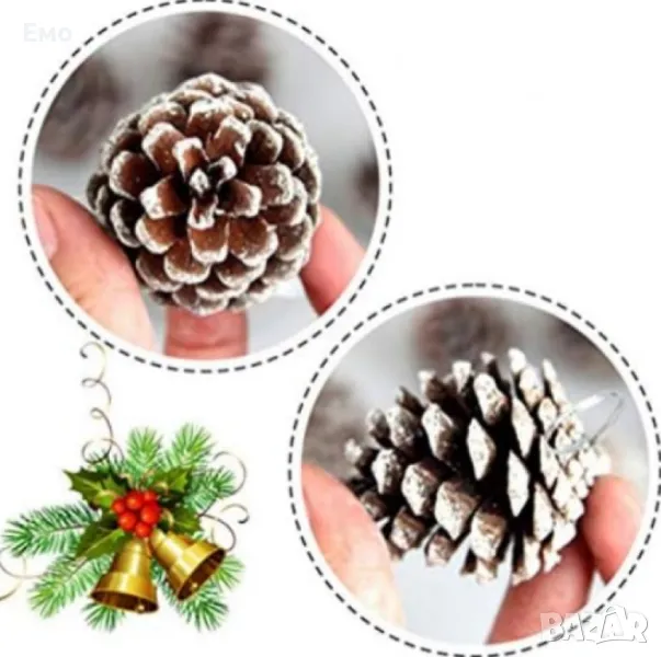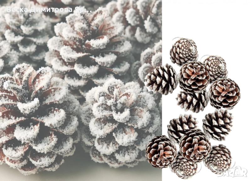 Естествени шишарки с изкуствен сняг.