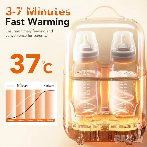 Бързо затопляне: Затопля мляко само за 3-7 минути, идеално за нощни хранения.