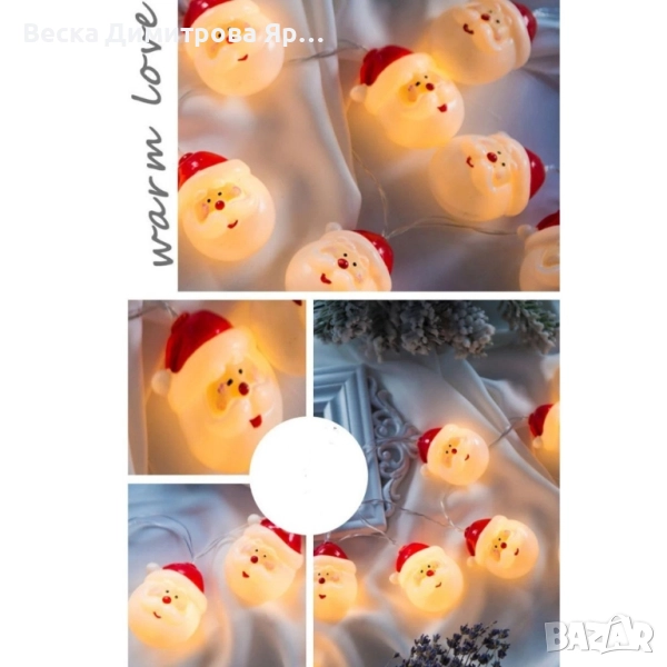 Коледна украса, светещи LED лампички с Дядо Коледа SD19 → Обява 48003292