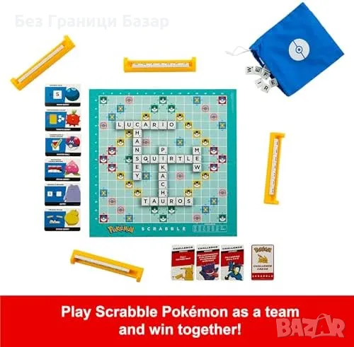 Нова Семейна Scrabble Pokémon игра за 2-4 играчи, UK версия Скрабъл