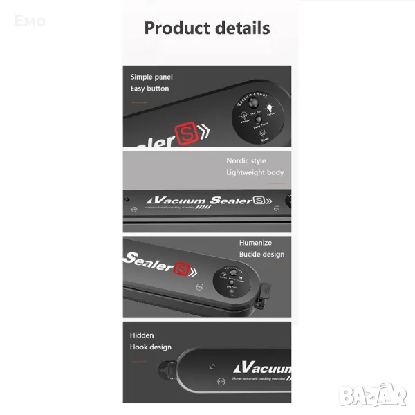 Благодарние на уплътнителя който е изработен от висококачествена ABS пластмаса, с 2 в 1 двоен режим, го прави подходящ за сухи и влажни храни.