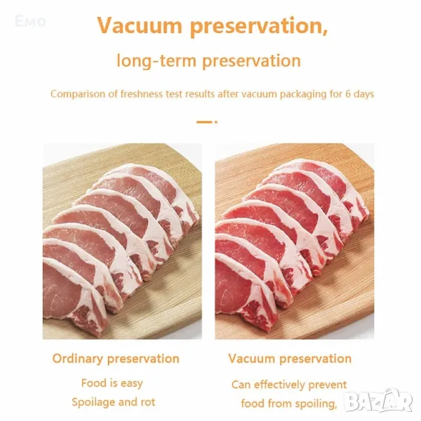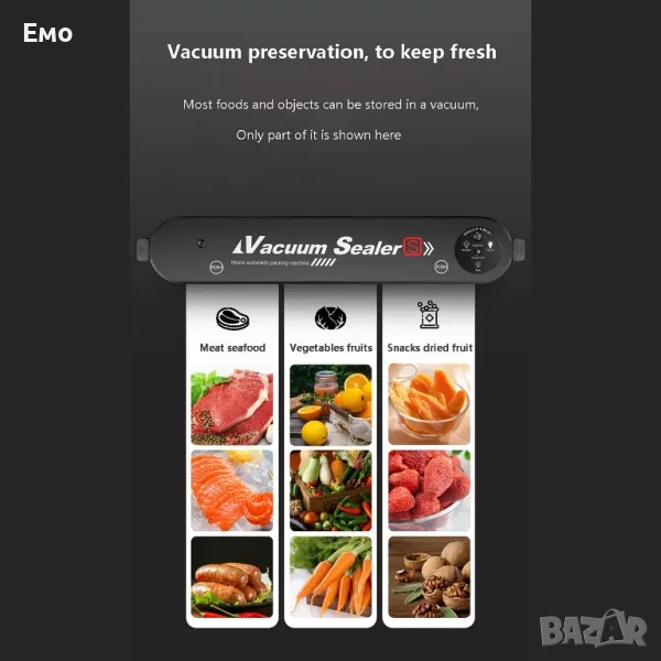 Вакуумира месото, рибата, зеленчуците, бобовите храни за едно още по-добро съхранение на продуктите.