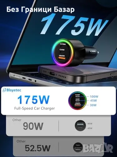 Мощен заряд с до 175W – идеален за лаптопи, телефони и таблети.