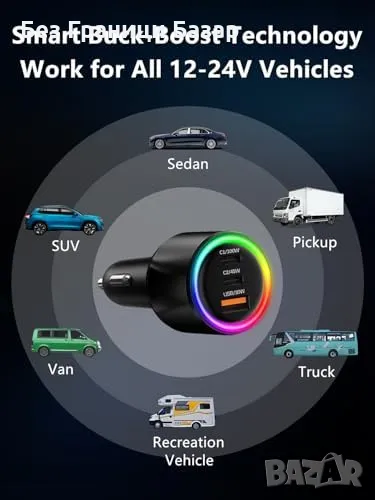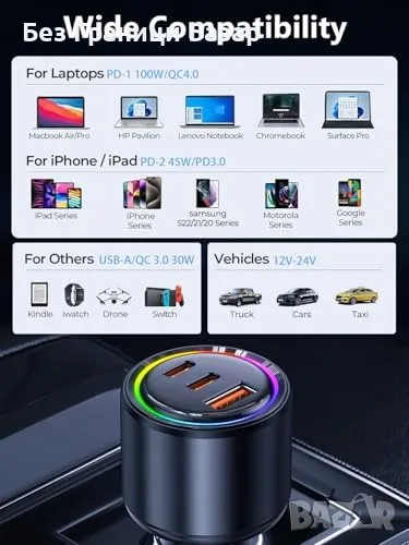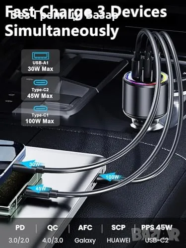 Ново USB C зарядно за кола 175W PD 100W бързо зареждане за iPhone и лаптопи
