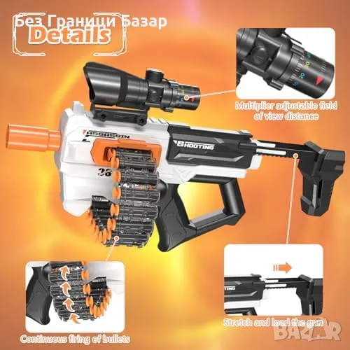 Нова Реалистична играчка пистолет бластер с 24 стрелички и обхват до 15 метра