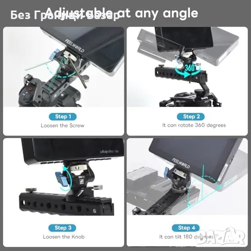 Blackmagic и Feelworld. Работи с камери и аксесоари със стандартни NATO релси.