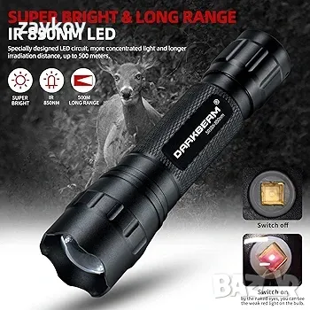 Лов, приключения, фотография, използване с обхват за нощно виждане, NVS, IR камера, IR светлинни фенерчета за търсене на открито, трябва да работят с инфрачервено устройство за нощно виждане, IR фенерче за наблюдение на природатаЛов, приключения, фотография, използване с обхват за нощно виждане, NVS, IR камера, IR светлинни фенерчета за търсене...