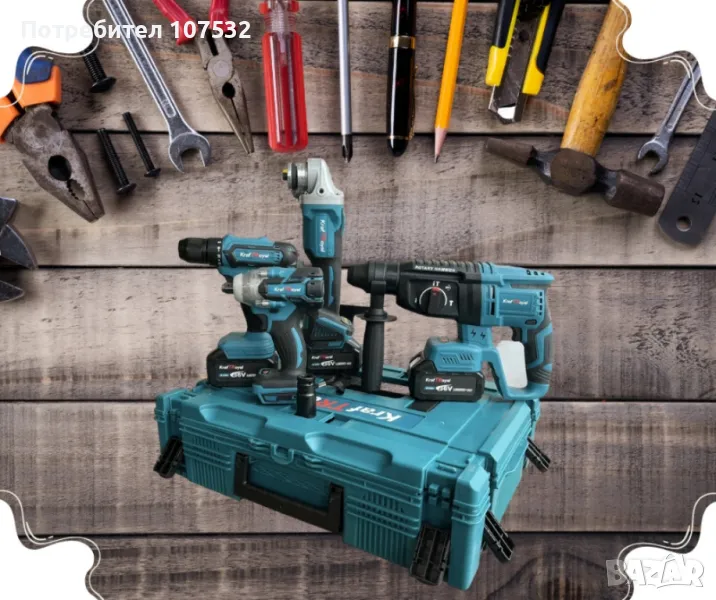 Комплект от акумулаторен перфоратор, ъглошлайф 125 мм, гайковерт и винтоверт 36V , снимка 1 - Други инструменти - 48004491 Комплект от акумулаторен перфоратор, ъглошлайф 125 мм, гайковерт и винтоверт 36V , снимка 2 - Други инструменти - 48004491 Комплект от акумулаторен перфоратор, ъглошлайф 125 мм, гайковерт и винтоверт 36V , снимка 3 - Други инструменти - 48004491 Комплект от акумулаторен перфоратор, ъглошлайф 125 мм, гайковерт и винтоверт 36V , снимка 4 - Други инструменти - 48004491 Комплект от акумулаторен перфоратор, ъглошлайф 125 мм, гайковерт и винтоверт 36V , снимка 5 - Други инструменти - 48004491 Комплект от акумулаторен перфоратор, ъглошлайф 125 мм, гайковерт и винтоверт 36V , снимка 6 - Други инструменти - 48004491 1/6