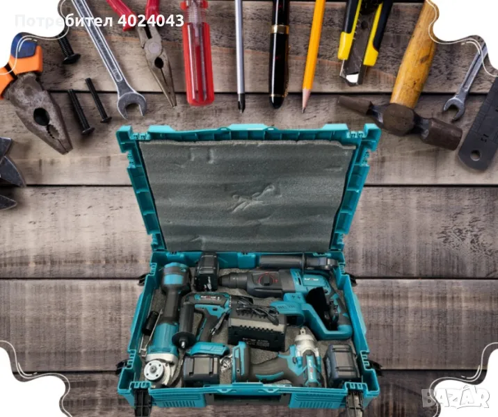 С този комплект от акумулаторен перфоратор, ъглошлайф, гайковерт и винтоверт ще имате всичко необходимо за изпълнение на разнообразни задачи с максимална ефективност и прецизност. С три мощни батерии и мултифункционално зарядно устройство, вие ще бъдете винаги готови за работа. Поръчайте сега и се възползвайте от всички предимства, които този висококачествен комплект предлага!