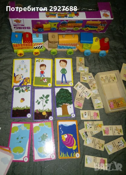 Снимка 1 и 2- дървено влакче , домино с животни, карти = 30 лв