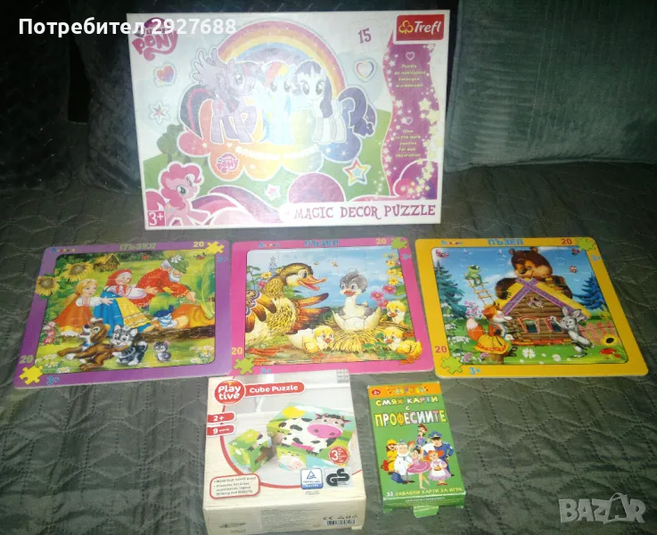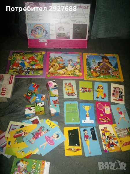 Снимка 5 и 6- дървени кубчета ,карти, картонени пъзели, голям светещ пъзел=20 лв
