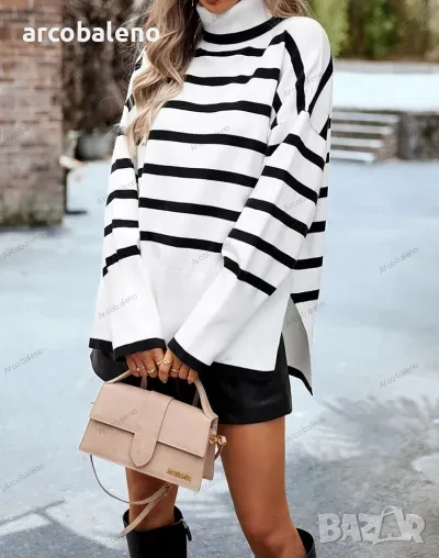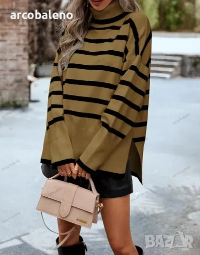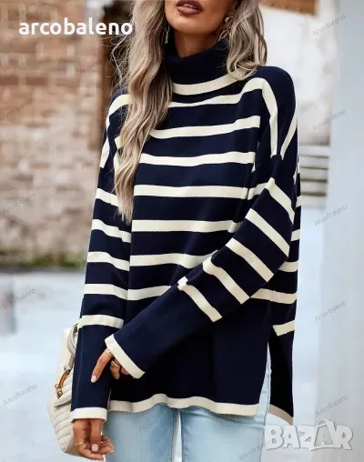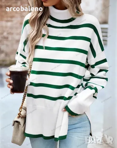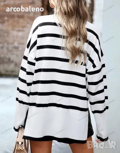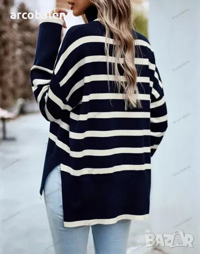 Дамски ежедневен раиран плетен пуловер, 5цвята