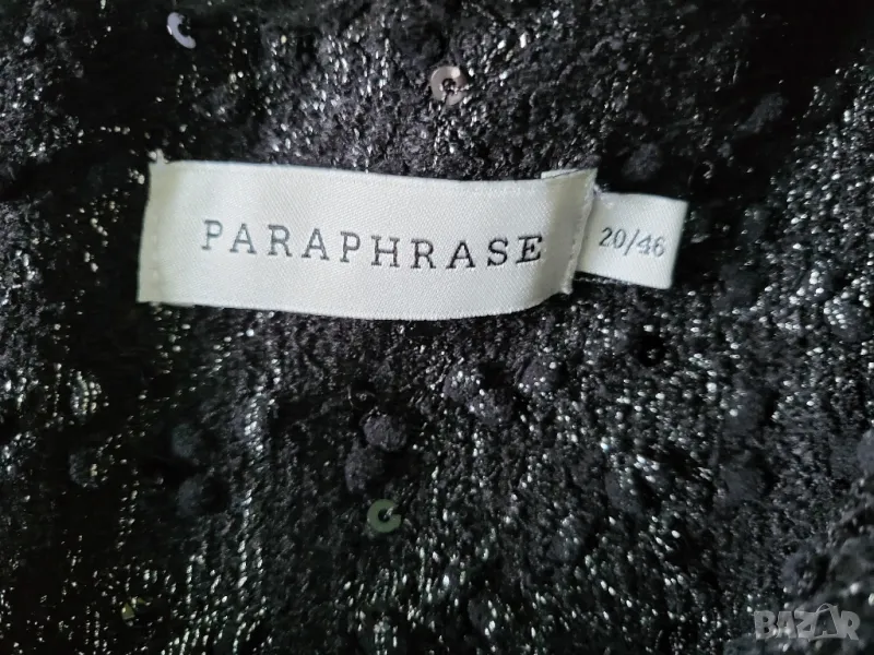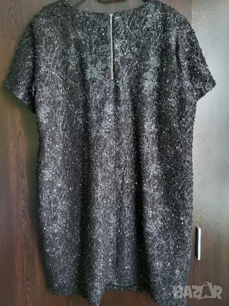 Черна къса официална рокля с черни пайети и сребристи нишки. По етикет е размер 46.
