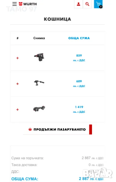 Продавам комплект от акумулаторни безчеткови машини на Вюрт от M-Cube серията в отлично визуално състояние и работят перфектно, внос от Франция. Обявената цена включва акумулаторен перфоратор, ъглошлайф, винтоверт, 3 броя батерии по 18V 4.0Ah с индикатор и бързо зарядно. Пращаме с преглед и тест с куриерска фирма еконт може и лично предаване за гр. Шумен.