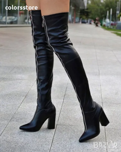 Чизми на ток - черна кожа - B240