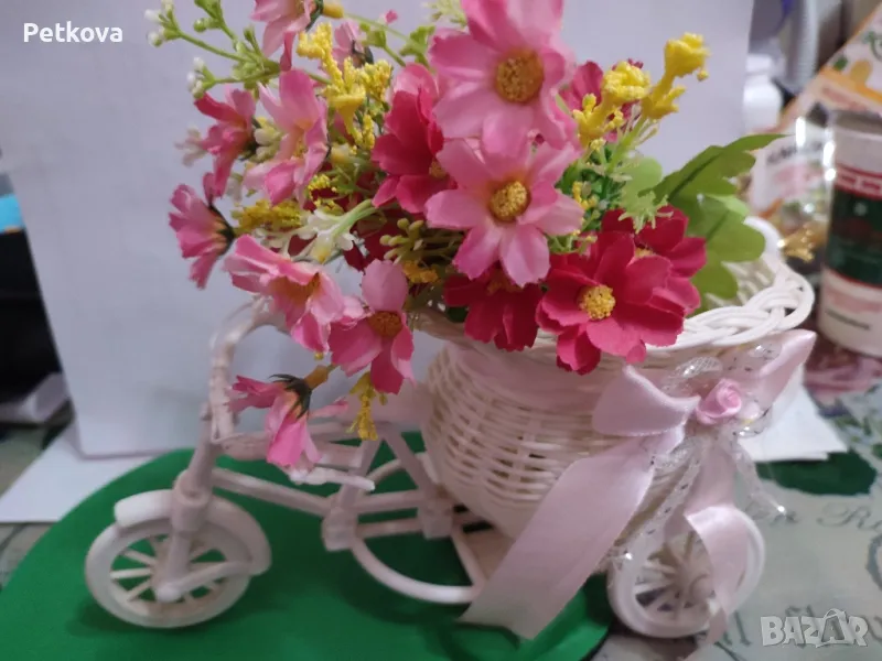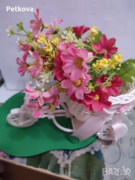 Много е красиво. С цветята подарък. Пластмаса е.