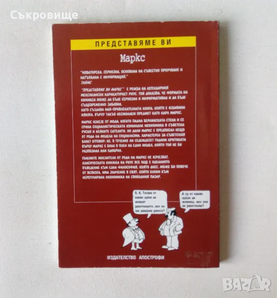 "Представяме ви Маркс" е рожба на легендарния мексикански карикатурист Риус. Той доказва, че формата на комикса може да бъде сериозна и информативна и да бъде същевременно забавна като създава най-привлекателната книга, която е издавана някога върху Карл Маркс.