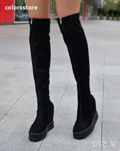 Ботуши на платформа - черен велур - BP1