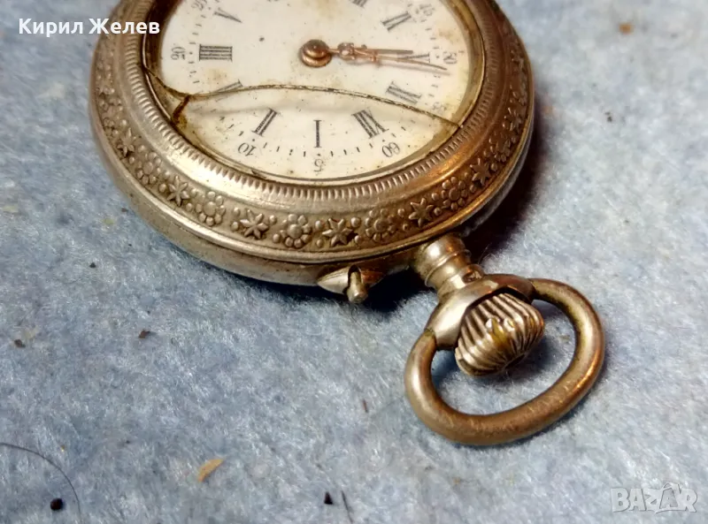 Стар СРЕБЪРЕН ДЖОБЕН ЧАСОВНИК СРЕБРО 800 СТИЛНО ОРНАМЕНТИРАН ФУНКЦИОНИРАЩ 48857