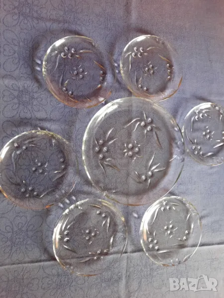Сервиз за десерти - голяма чиния ( 29 см. ) и 6 малки ( 19 см. ). Ползван епизодично, при сериозно вглеждане могат да се видят следи от прибори. Без чипове и пукнатини.