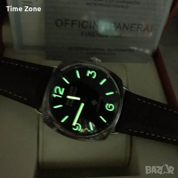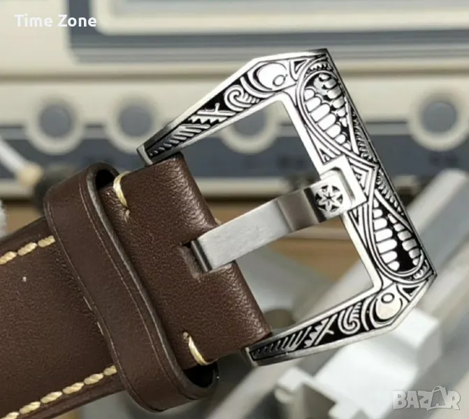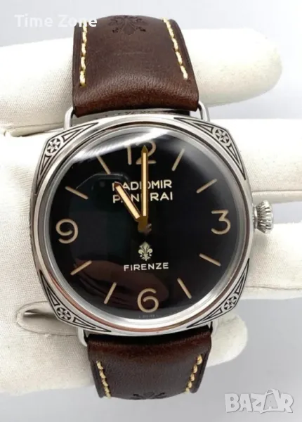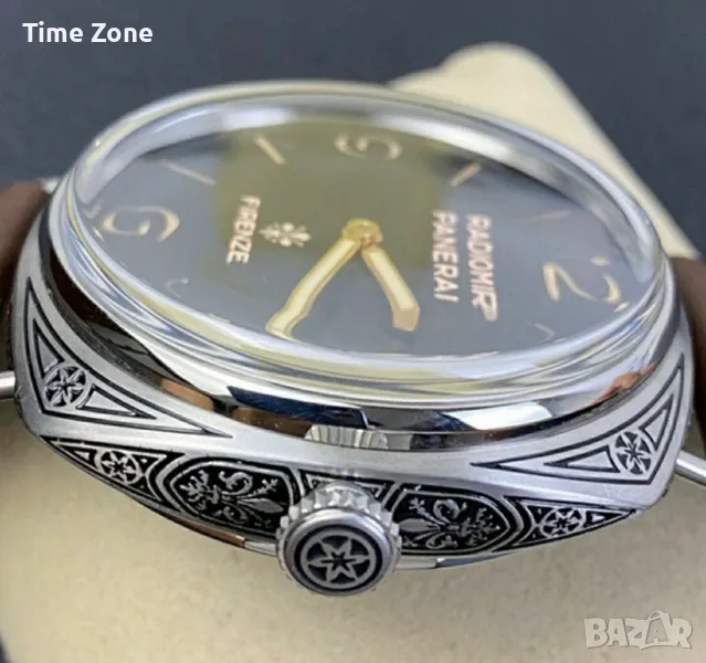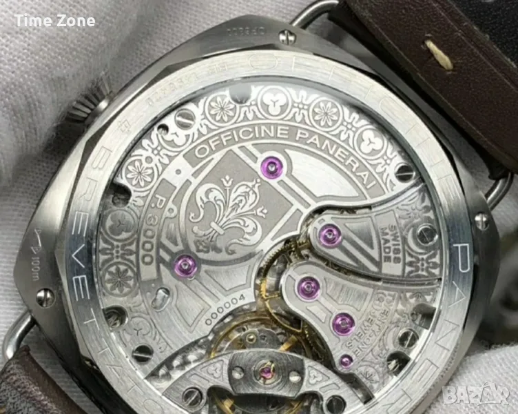 - Механизъм: Panerai Calibre P.3000, прецизно гравиран, ръчно навиване