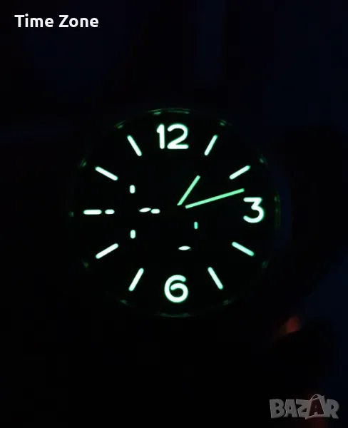 - Циферблат: Черен мат, двуслоен тип "сандвич", кремави (винтидж) стрелки и часови маркери с ярка луминесценция