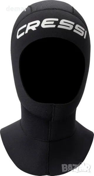 CRESSI Еластична дълга качулка 3 mm L - унисекс качулка с удължена яка в черно Двойна подплата
